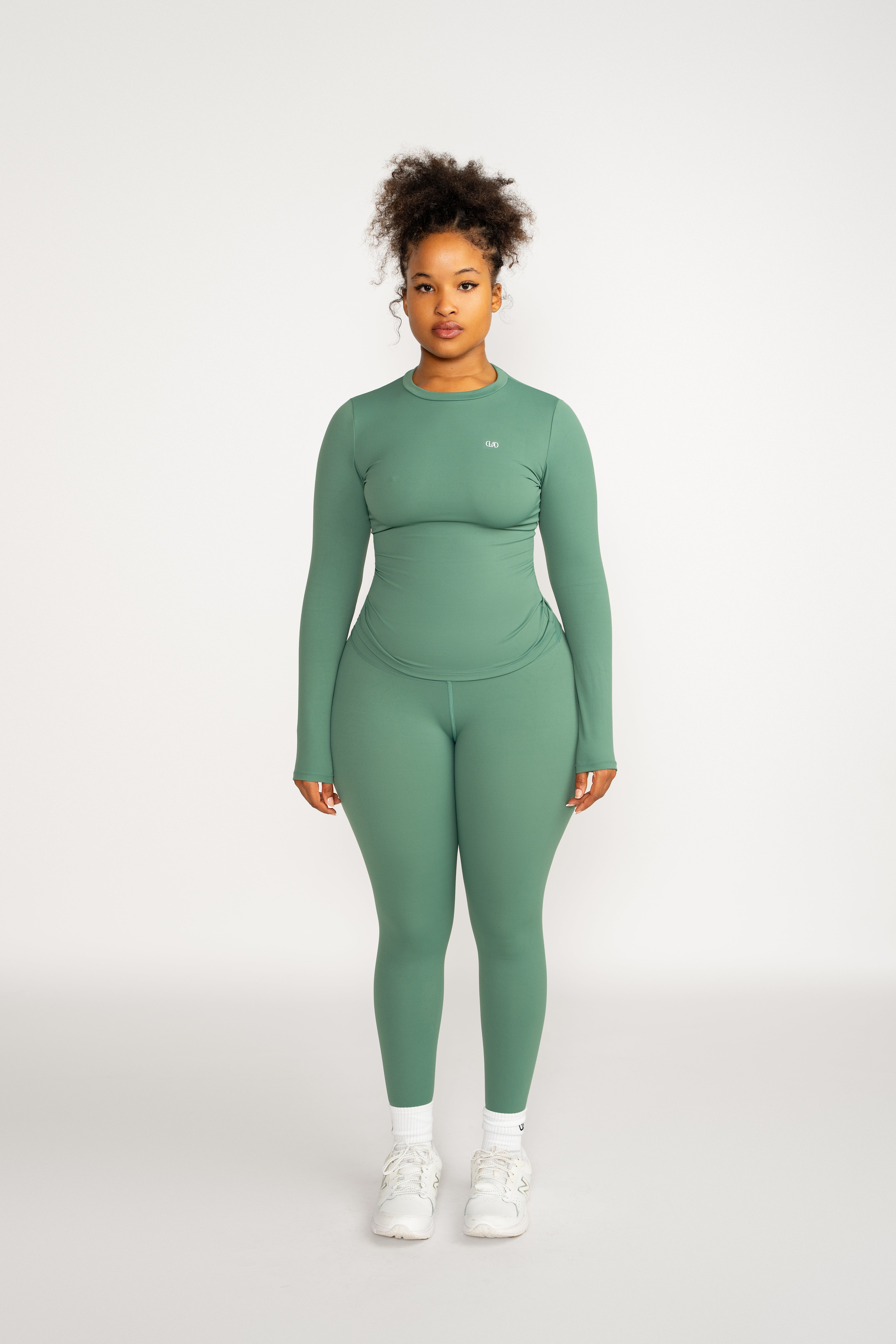 The Jade Sculpt Set brings bold energy in a sleek, body-contouring silhouette. This 3-piece set includes the Sculpt Short Sleeve, Leggings, and Long Sleeve Top - each made from buttery-soft, high-compression fabric that smooths and supports your curves.